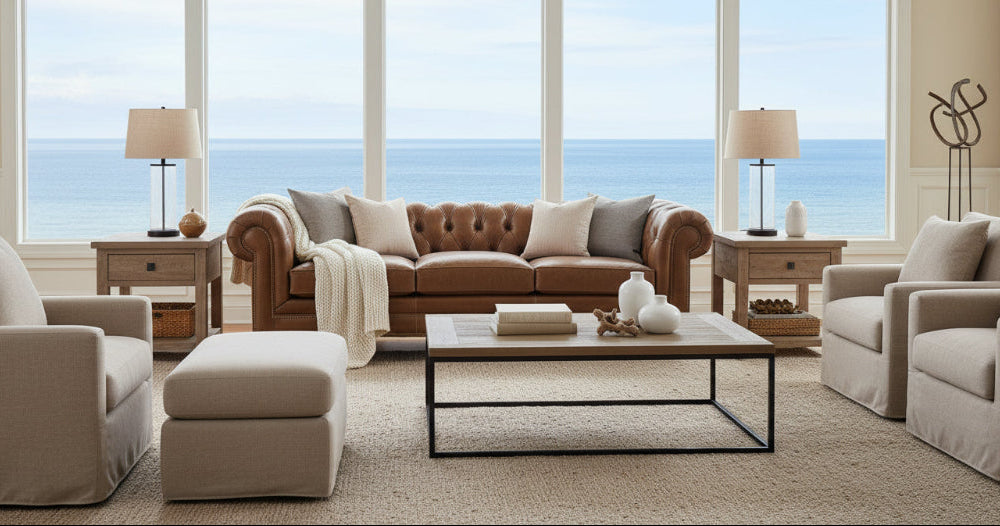 The comfort and quality of all our pieces is outstanding! The majority of our upholstered furniture is benchmade in the U.S.A. Each piece is engineered for a lifetime of comfort and seating enjoyment. The frame design and tempered steel continuous wire spring system combined with our medium firm cushion density give each piece a controlled yet very relaxed feel, you can also upgrade very inexpensively to down blend cushions for an even higher level of luxury.