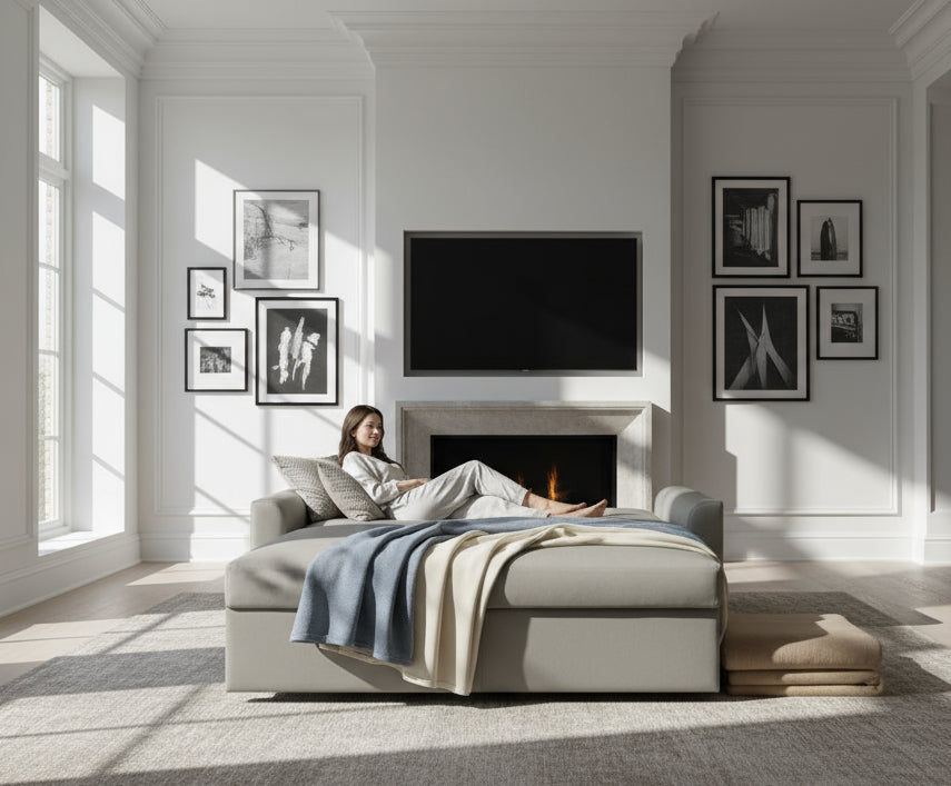 The Anson 77 inch contemporary wing arm NEXT-GEN Queen sleep sofa is perfect for smaller spaces. Crafted with a hardwood frame, this Queen sleeper sofa is designed for lasting durability and style. Handcrafted and bench-made in North America, it epitomizes the finest hand-craftsmanship. Featuring a single plush bench cushion and top-stitched seams, the Anson NEXT-GEN sleeper sofa offers an indulgent seating experience with a touch of elegance. Choose from 40 premium top-grain leathers to tailor your sofa to match your décor perfectly. Elevate your sleeping comfort with the hand made pocket coil sleeping surface and seating, providing an extra layer of luxury. Transform your office, den or living room in to a comfortable and inviting guest suite with this exquisite wing arm sleeper sofa.