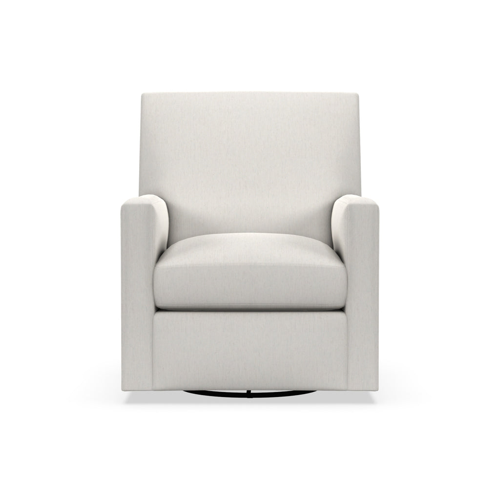 The Blaine upholstered Swivel / Glider chair is perfect for a contemporary living room, when you need additional seating or you'd like to create a secondary seating area in a cozy corner or by a fireplace. Swivel accent seating is meant to complement (but not necessarily match) larger pieces of furniture like a couch. With 100 different fabrics to choose from, it's easy to find the perfect material and color that will blend in harmoniously. There are luxurious fabrics such as performance velvets, microfibers and linen, and more casual fabrics such as cotton twill and brushed canvas. The color and material you choose will change the appearance of the chair to be either elegant for a formal living room or rough and ready for a casual sunroom or den. Our upholstered chairs are ruggedly built from kiln-dried hardwood frames with our special no-sag spring system. They're handcrafted in the U.S. and custom made to your order.