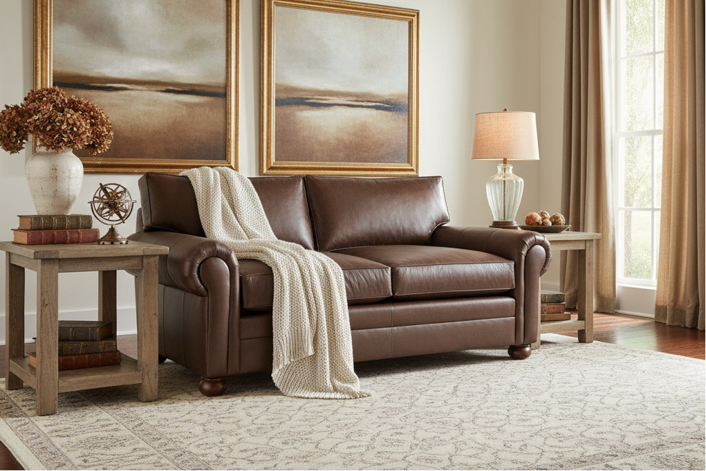 Featuring aesthetic wonders like a stylish silhouette with panel rolled arms and bun feet, plus fantastic functionality like the option to order in two different sizes, the Carrigan Grand Scale Loveseat is remarkably versatile. This large, leather loveseat comes in two frame depths - 43 inches with a 25-inch seat depth and 48 inches with a 30-inch seat depth - to help you meet the demands of any challenging room.