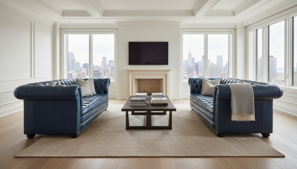 We pride ourselves on our built-to-order apartment-size sofas. When ordering your leather sofa, you get to select from 40 gorgeous leather tone options. We also offer two leg color options for the tufted leather sofa's kiln-dried hardwood frame.
