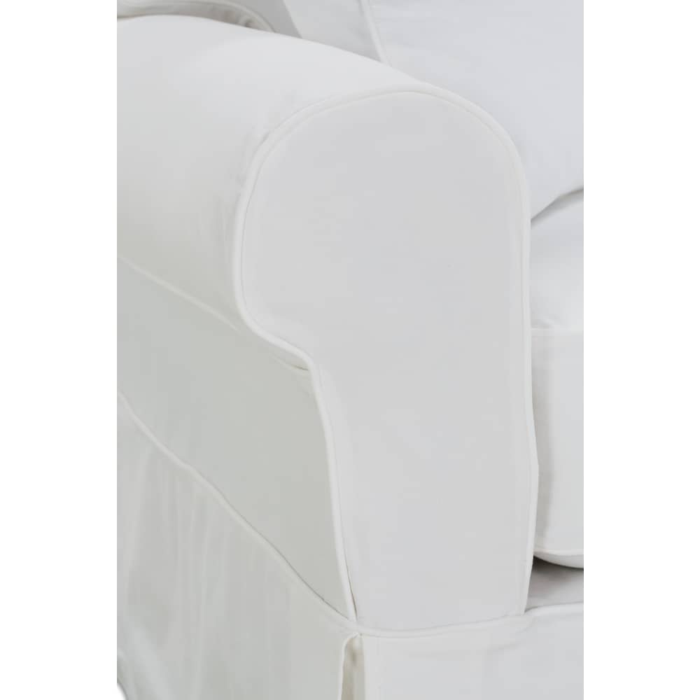 Christine is available in an array of combinations, it is sure to accommodate your needs and fit the shape of any room. This slip covered sectional couch is expertly tailored and available in 100 colorful fabrics. Classic style with opulent overstuffed seats and deep box cushion backs, you will feel Christine calling every time you enter the room. Order today! Available in a multitude of combinations to fit your large or small space. Pictured above with a left facing corner sofa and a right facing loveseat.