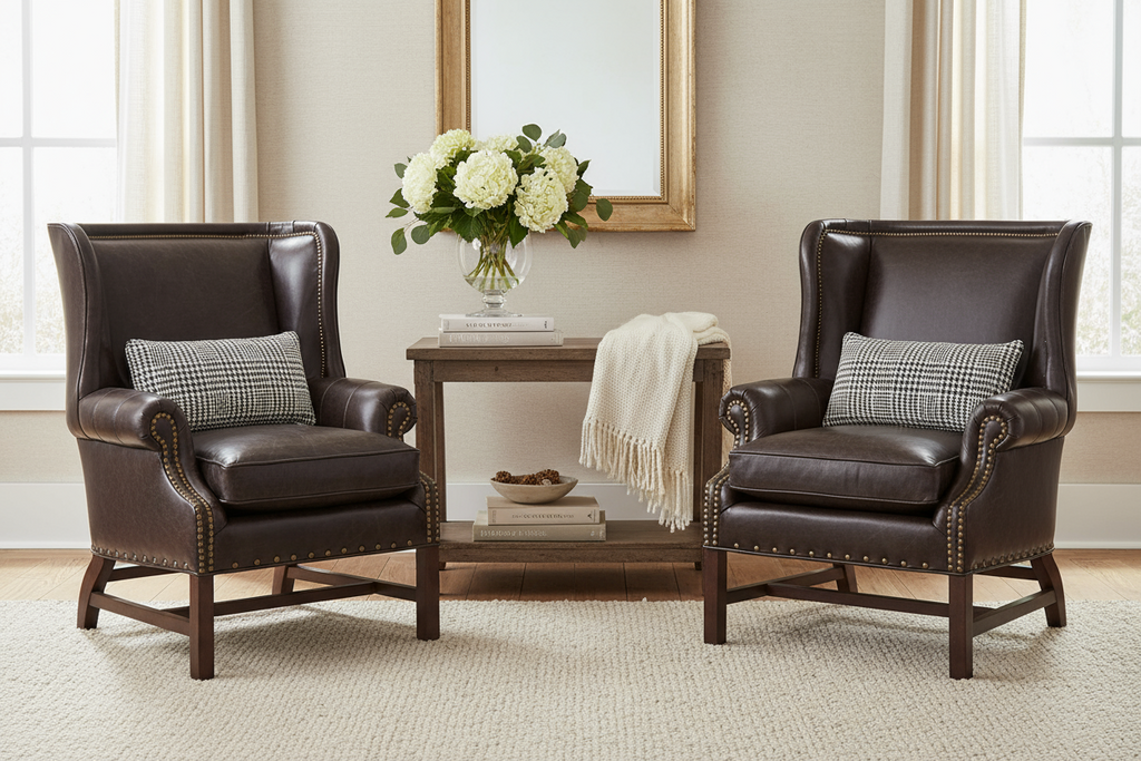Hand-crafted by skilled builders, this American-made chair is a quality design you can afford. The select kiln-dried hardwood frame and true eight-way hand-tied springs provide superior support and strength. You can even depend on the 100-percent top-grain, aniline-dyed leather to be a durable addition to your home.