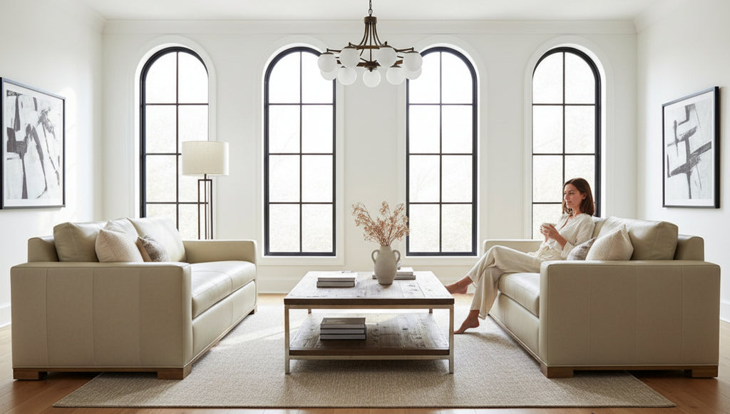 The comfort and quality of all our pieces is outstanding! The majority of our upholstered furniture is benchmade in the U.S.A. Each piece is engineered for a lifetime of comfort and seating enjoyment. The frame design and tempered steel continuous wire spring system combined with our medium firm cushion density give each piece a controlled yet very relaxed feel, you can also upgrade very inexpensively to down blend cushions for an even higher level of luxury.