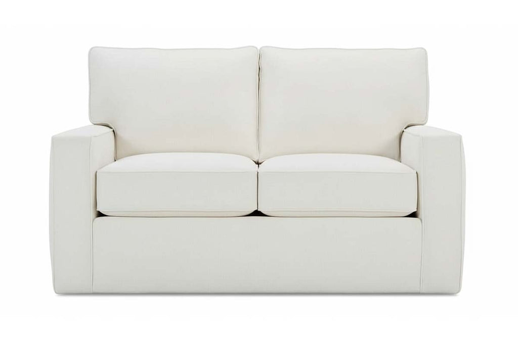 The Jennifer "Designer Style" track arm fabric upholstered loveseat measures W58" x D35" x H36". Price includes FREE matching throw pillows. Available in 100 assorted fabric colors! Price shown is for Tier 1 fabric option.