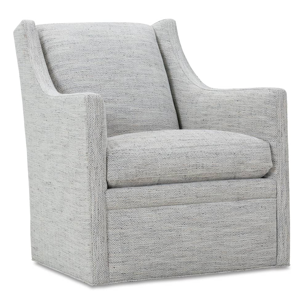 The Jessica upholstered Swivel chair is perfect for a transitional living room, when you need additional seating or you'd like to create a secondary seating area in a cozy corner or by a fireplace. Swivel accent seating is meant to complement (but not necessarily match) larger pieces of furniture like a couch. With 100 different fabrics to choose from, it's easy to find the perfect material and color that will blend in harmoniously. There are luxurious fabrics such as performance velvets, microfibers and linen, and more casual fabrics such as cotton twill and brushed canvas. The color and material you choose will change the appearance of the chair to be either elegant for a formal living room or rough and ready for a casual sunroom or den. Our upholstered chairs are ruggedly built from kiln-dried hardwood frames with our special no-sag spring system. They're handcrafted in the U.S. and custom made to your order.