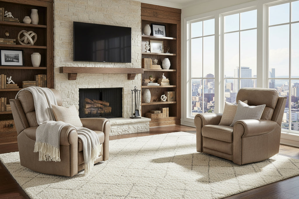 Sit back and lounge in style with the Traditional Maxwell Camel ZERO GRAVITY leather recliner. The beautiful Epic Kalahan Camel leather on this chair will fit into any living space perfectly. Whether it’s your living room, office, or anywhere else, this ultra comfortable leather recliner will add luxury and elegance to your home.