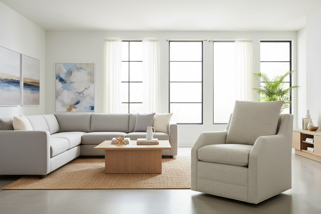 The comfort and quality of all our pieces is outstanding! The majority of our upholstered furniture is benchmade in the U.S.A. Each piece is engineered for a lifetime of comfort and seating enjoyment. The frame design and tempered steel continuous wire spring system combined with our medium firm cushion density give each piece a controlled yet very relaxed feel, you can also upgrade very inexpensively to down blend cushions for an even higher level of luxury.