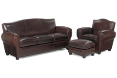 Modern with a twist perfectly describes our Parisian Moustache Back Furniture collection. This art deco reproduction furniture collection is known for being a sleek rendition on a well-loved theme. It features lines that manage to be equal parts quirky and graceful. The Parisian Moustache back collection delivers a punch of personality to any living room, while not being too overwhelming. Subtle and persuasive, this collection features a Parisian style ottoman, the moustache back chair, recliner, loveseat w/ moustache back and, the Art Deco Reproduction sofa. A curved back and simple but defined lines make this Parisian style sofa, and its counterparts, a dramatic and comfy addition to any room in your home. Shop our entire leather sofa collection today!