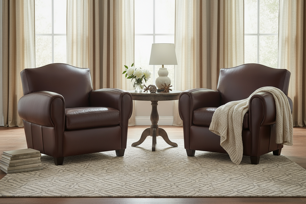 Our art deco leather chairs are carefully crafted in the U.S.A. for quality you can count on. The chair frames are made from select kiln dried hardwoods and each Parisian art deco leather chair is backed by a manufacturer's warranty. An additional 5-year leather protection plan is also available.