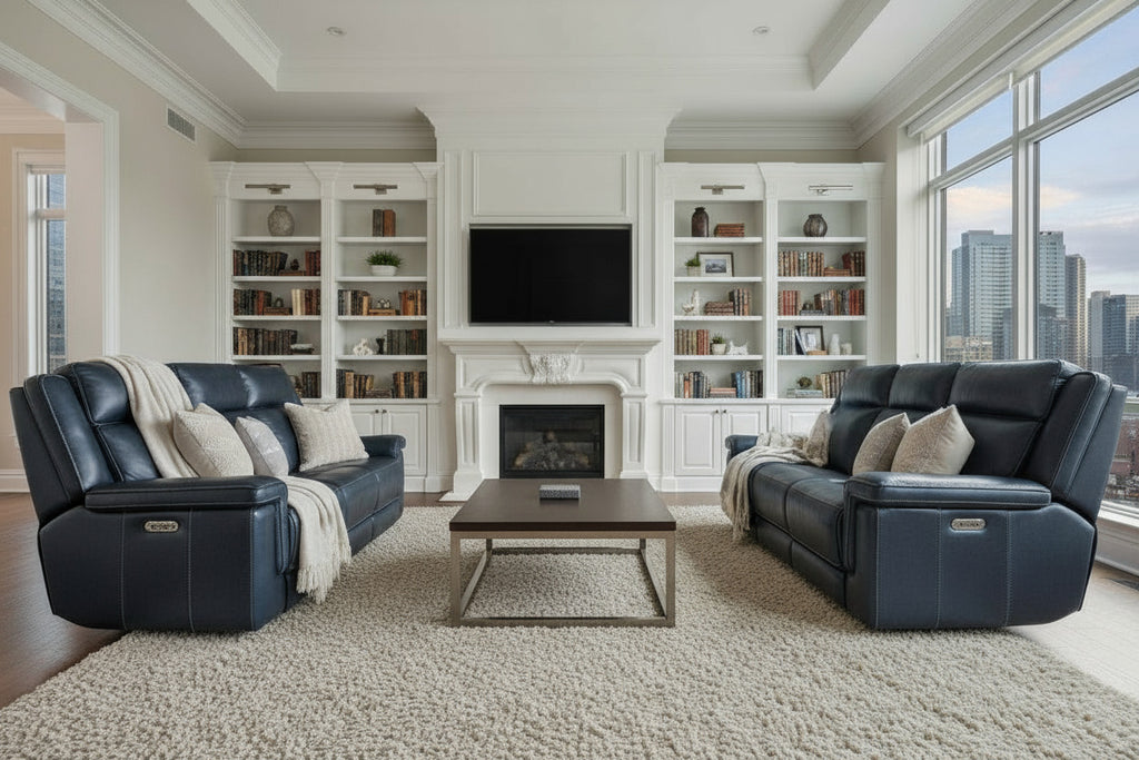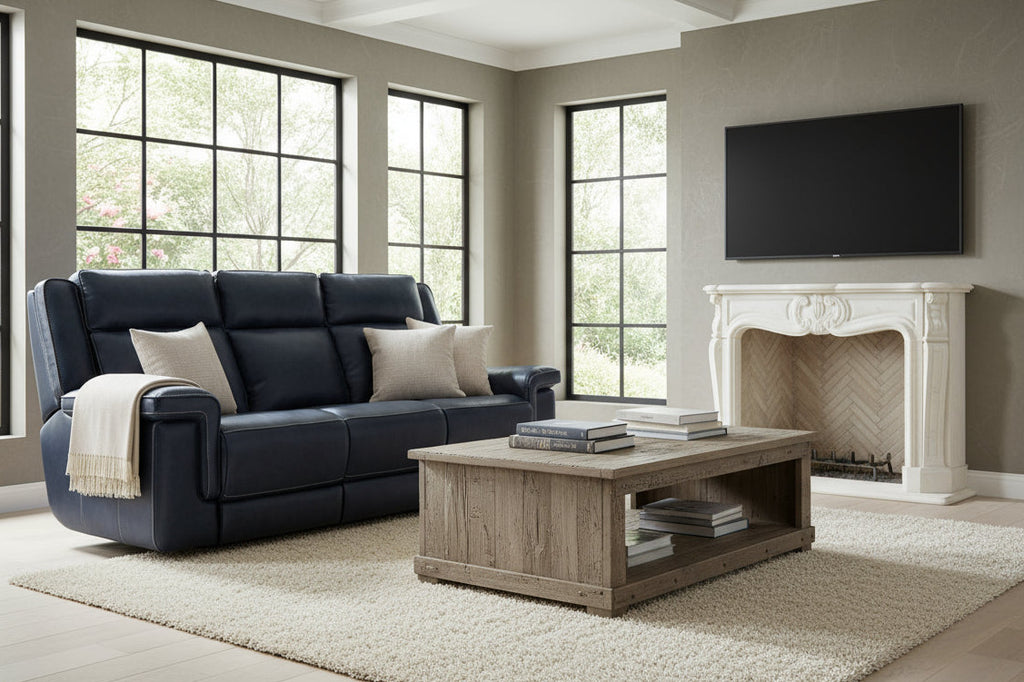 Make this unique reclining modern leather loveseat yours today... get low monthly payments when you finance it during checkout with Affirm! This modern zero gravity sofa re-defined. The Spencer Cobalt Power Quick Ship zero gravity electric leather reclining sofa features several reclining positions, including TV and fully extended. Whether it’s time to relax, watch your favorite show, or read a good book, this sofa will offer comfort while adding style to any room. This sophisticated, modern high-style leather reclining sofa is available in rich top grain Epic Cosmos Cobalt leather (as shown) with top padded square arms with contrasting accented sewing on top stitched seams. 3-Way power switches that control the recline, lumbar support and headrest adjustment. This zero gravity reclining sofa is ideal for any room in your home. Modern design, hand-crafted comfort, and plush power controlled seating options.