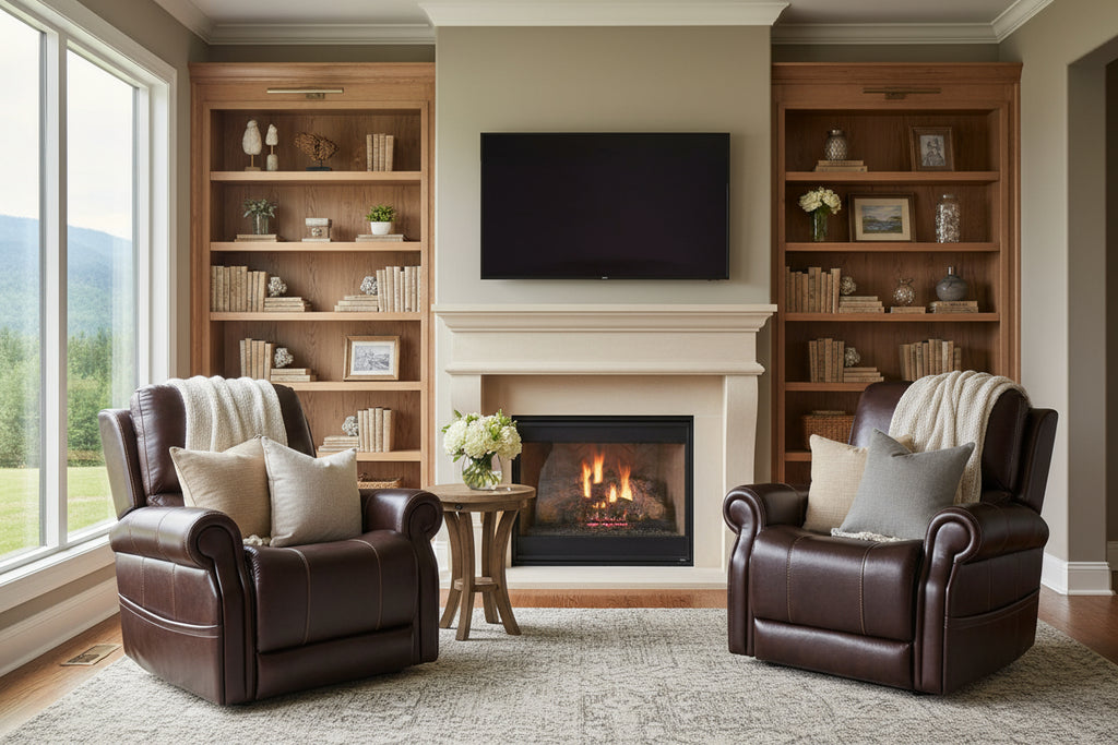 The Stanley Walnut "Quick Ship" Power LIFT chair/recliner measures W38" x D41" x H42" and features multiple reclining positions, including TV and fully reclined. Depth when fully reclined is 72." The Stanley lift recliner is fully upholstered in Epic Maddison Walnut leather and this power lift recliner delivers full-spectrum comfort and style. Upholstered in luxurious top grain leather with contrasting stitch trim, it features a bustle back design for timeless appeal. This recliner goes above and beyond with power-adjustable headrest, lumbar support, and recline—plus a lift function for ease of mobility. A convenient side pocket keeps essentials close at hand, making it ideal for daily relaxation or recovery needs. This chair is the ultimate combination of support, function, and classic comfort.