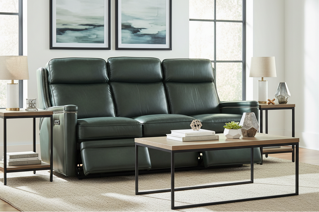 Make this unique reclining traditional leather sofa yours today... get low monthly payments when you finance it during checkout with Affirm! The Traditional zero gravity sofa re-defined. The Theron Portal 2-Way Power Quick Ship zero gravity electric leather reclining sofa measures W79" x D39" x H42". Experience luxurious comfort and refined style with the Theron Reclining Sofa. Upholstered in rich top-grain Epic Sarzana Portal leather, this piece combines classic design elements with advanced functionality. The bustle back cushions provide plush support, while the elegant nailhead trim adds a touch of timeless sophistication. Featuring zero gravity power recline, the Theron offers optimal weight distribution to reduce pressure on your back and joints, delivering a truly weightless lounging experience. The dual power headrests allow for customizable neck and head support at the touch of a button, ensuring personalized comfort. Built-in USB ports keep your devices charged and within reach, blending modern convenience with traditional elegance. Perfect for movie nights or everyday relaxation, the Theron Reclining sofa is where comfort meets .