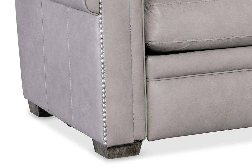 Make this unique reclining modern leather Sofa yours today... get low monthly payments when you finance it during checkout with Affirm! MADE IN THE U.S.A.! The Wentworth "Quick Ship" transitional dual power sofa measures W88" x D42" x H42". Experience the perfect blend of comfort, craftsmanship, and style with this Quick Ship handcrafted reclining sofa, proudly made in North Carolina. Upholstered in luxurious Epic Cement premium top grain leather, this piece exudes contemporary elegance while offering lasting durability. Designed for everyday relaxation, it features left and right full recline functions with articulating headrests, delivering fully customizable support for your head, neck, and legs at the touch of a button. At the heart of this exceptional sofa is the Spring Down cushion system, engineered for ultimate comfort. Each cushion includes a 4.5-inch MARSHALL coil unit encased in high-density foam and wrapped with low melt fiber for added softness. The entire unit is enveloped in down-proof ticking filled with a lavish blend of down, feathers, and fibers, offering an ideal balance of plush sink-in feel and resilient support. A bustle-back design enhances lumbar comfort and adds a tailored silhouette, while thoughtful details like nailhead trim and clean, structured arms elevate the aesthetic. With a Quick Ship option for faster delivery, this handcrafted reclining sofa is ideal for those who want top-tier American-made quality, without the wait. Perfect for your living room, media room, or any space where style meets relaxation.